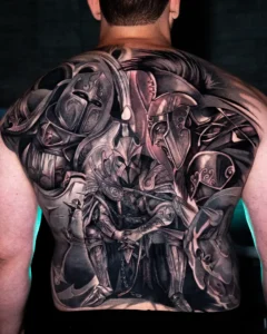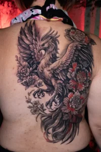 Dynamic Backgrounds: We often use “organic” elements like smoke, feathers, flowers, or shadows to mask irregular shapes from the previous tattoo.